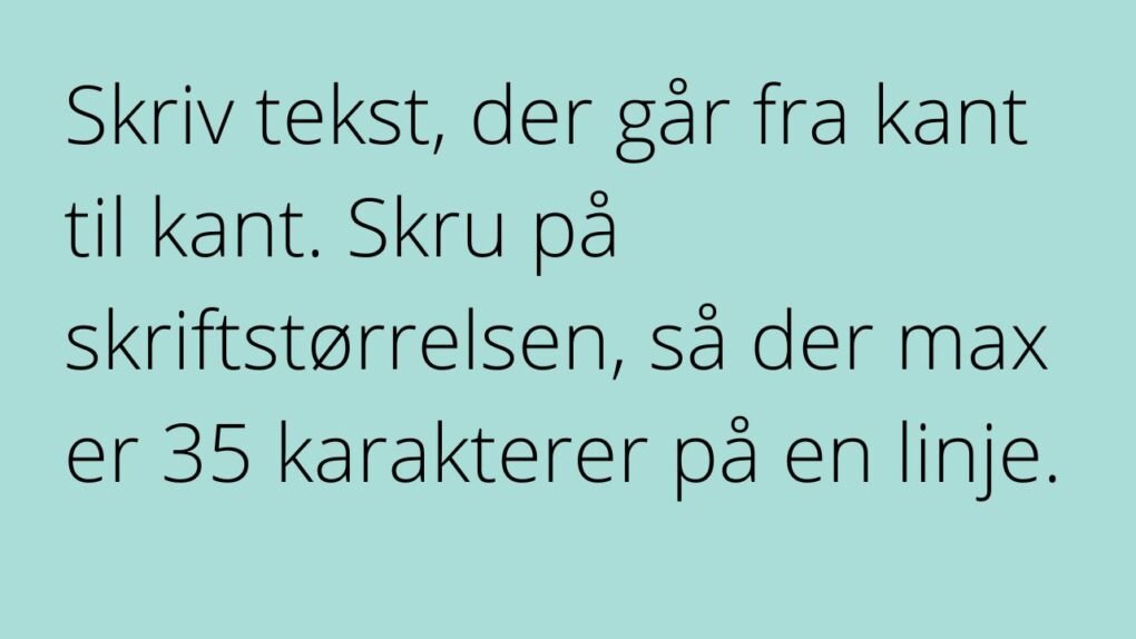 Inden du designer teksten og opslaget, skal du finde den rette skriftstørrelse. Det gør du ved at skrive en såkaldt dummy-tekst og indstille skriftstørrelsen, så der kun er plads til 35 karakterer på linjen.