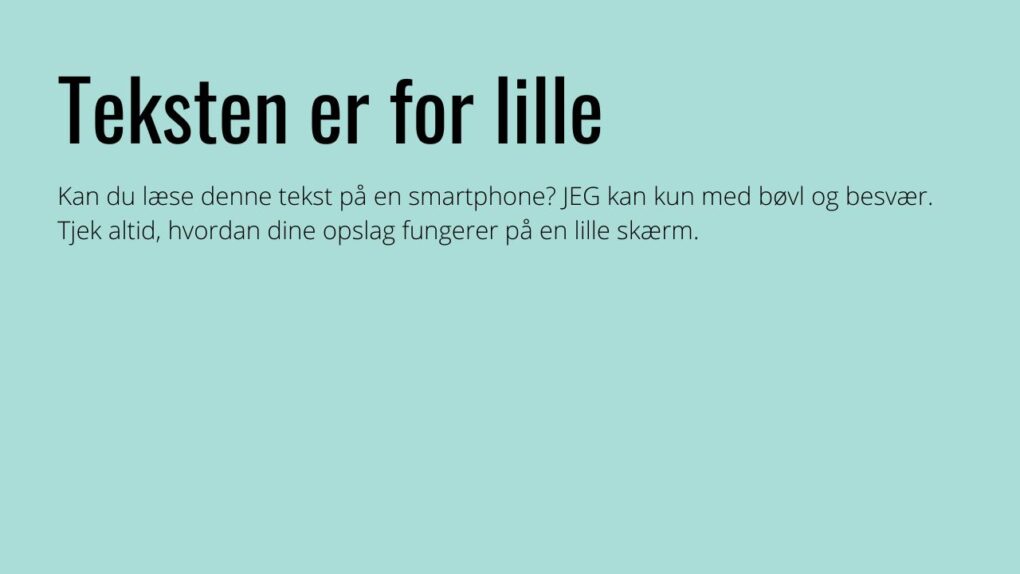 Mange af de opslag der postes på sociale medier er vældig flotte på en stor skærm. Men umulige eller bøvlede at læse på en lille skærm. Og det er synd.
